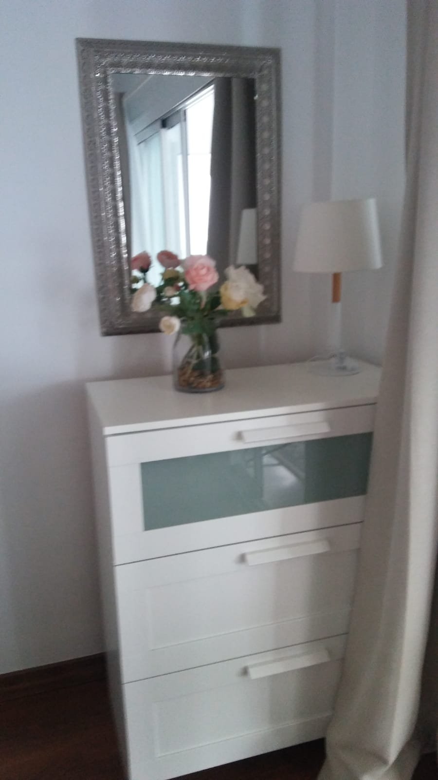 Одна спальня с двуспальной кроватью, из нее выход на застекленную террасу, на эту же террасу можно попасть из салона.