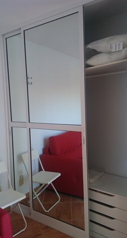 В студии только сделан ремонт, площадь 20 кв.м., в ванной комнате душевая кабина, в комнате диван-кровать, возможно дополнительное место для ребенка. Встроенный шкаф, телевизор, холодильник, утюг, гладильная доска, кондиционер, чайник, кофеварка, микроволновая печь, стиральная машина в ванной.