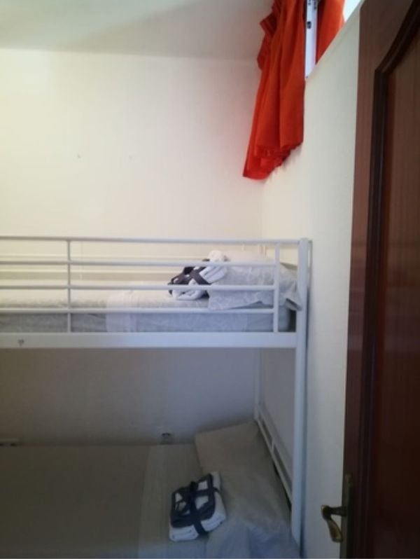 Салон совмещен с кухней, одна спальня с двуспальной кроватью и террасой, вторая спальня поменьше. Две террасы, виды на море, есть кондиционер.